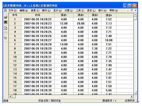 完成记录仪的各项参数设置,软件支持联机状态下的时时数据和时时曲线显示,使用软件可读取历史