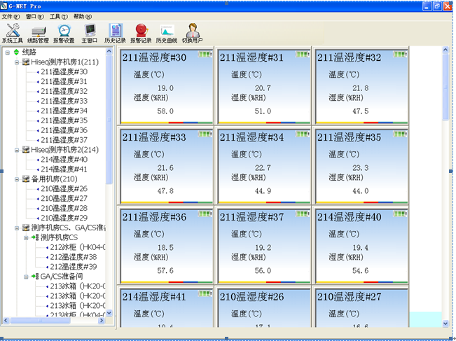 温湿度监测系统软件采用流行的窗口界面,可同时屏显示各点的温湿度数据值,可同屏显示各采集点